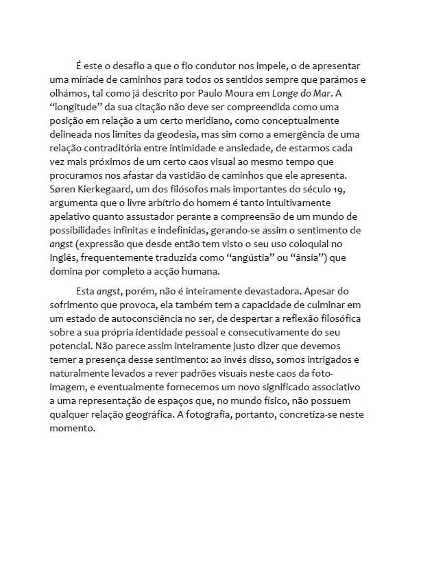 ” ‘Um fio condutor’ é a miríade de caminhos que se abriu sempre que parámos e olhámos. A longitude aqui não é uma posição em relação ao um meridiano, mas uma relação de intimidade, de estarmos mais próximos de um lugar quanto o número de caminhos que ele nos abra.“